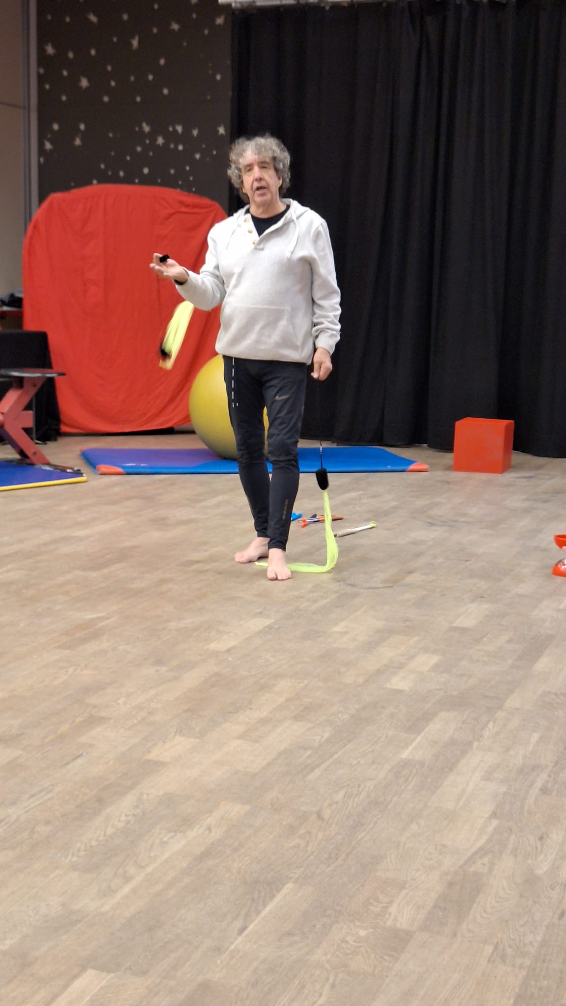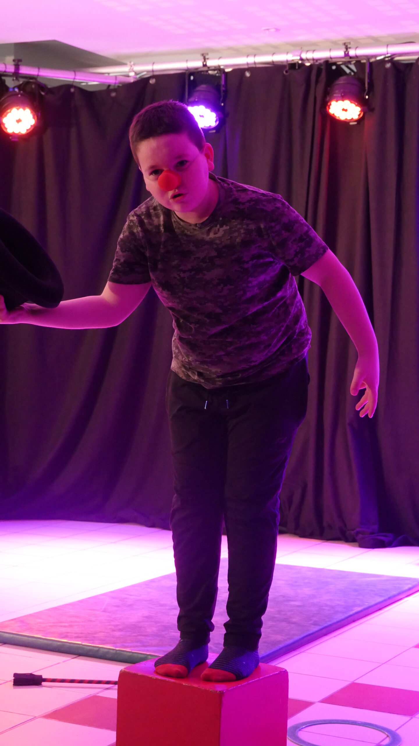 – Travail acrobatique, maquillage,fabrication de nez en latex, accessoires burlesques